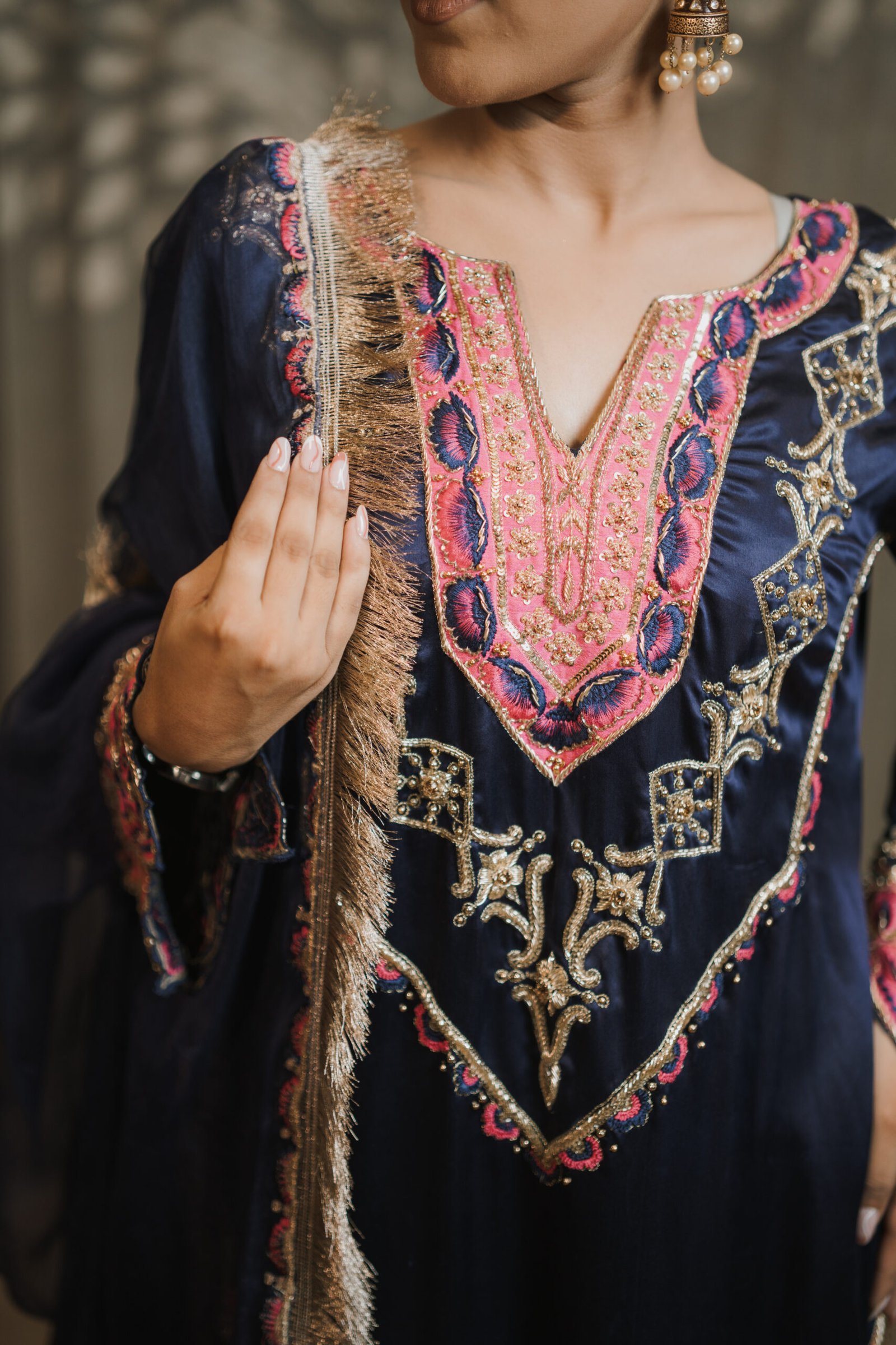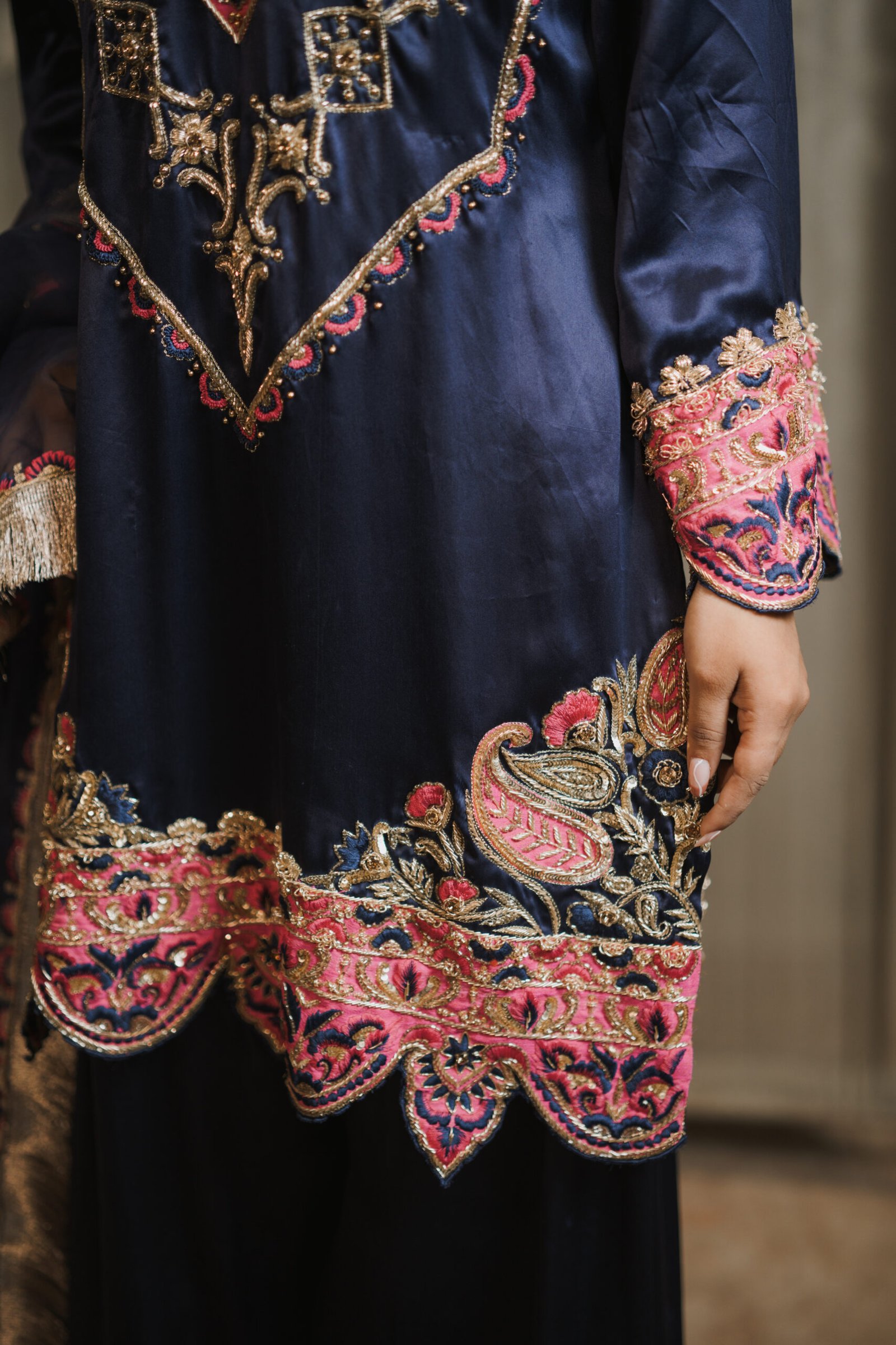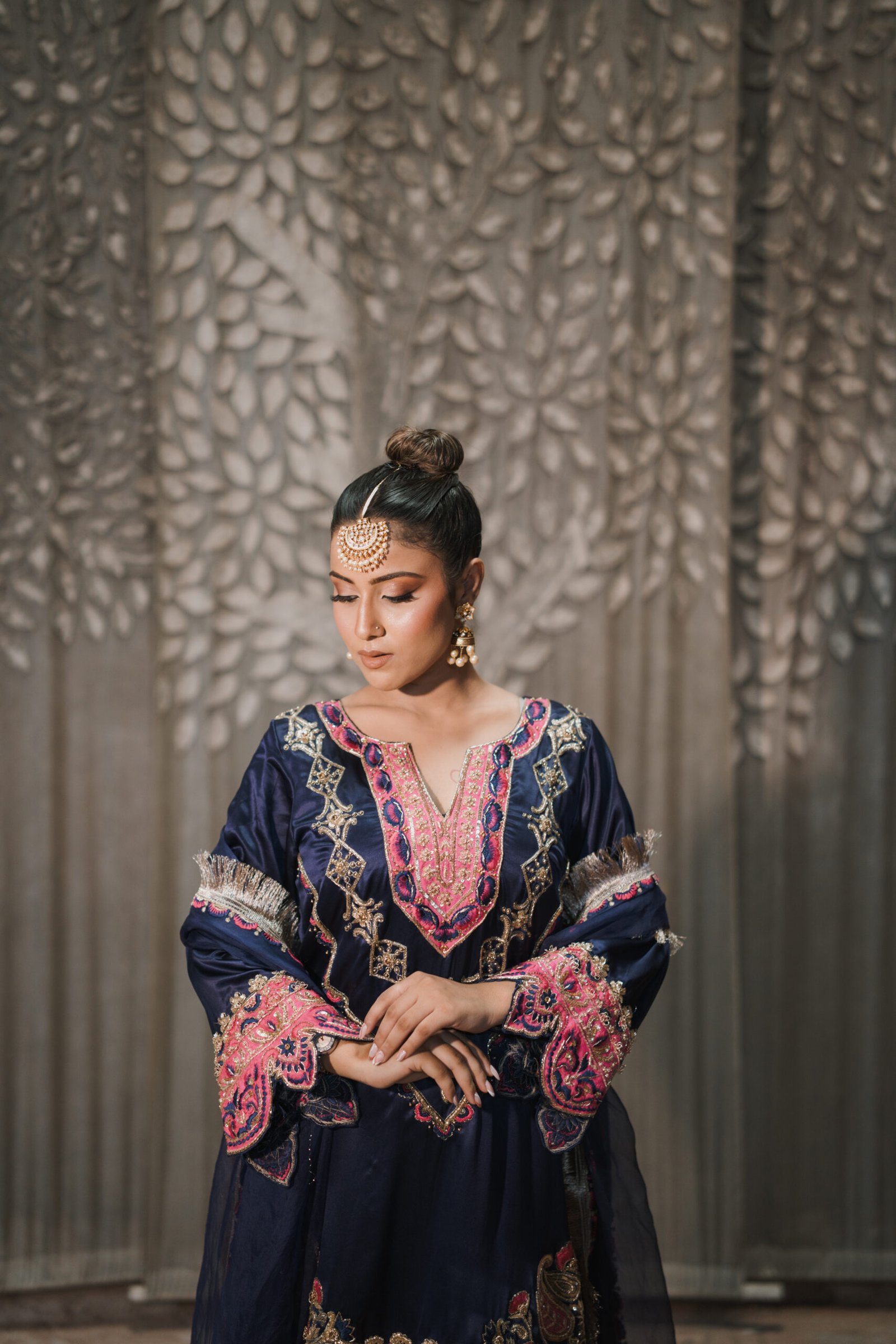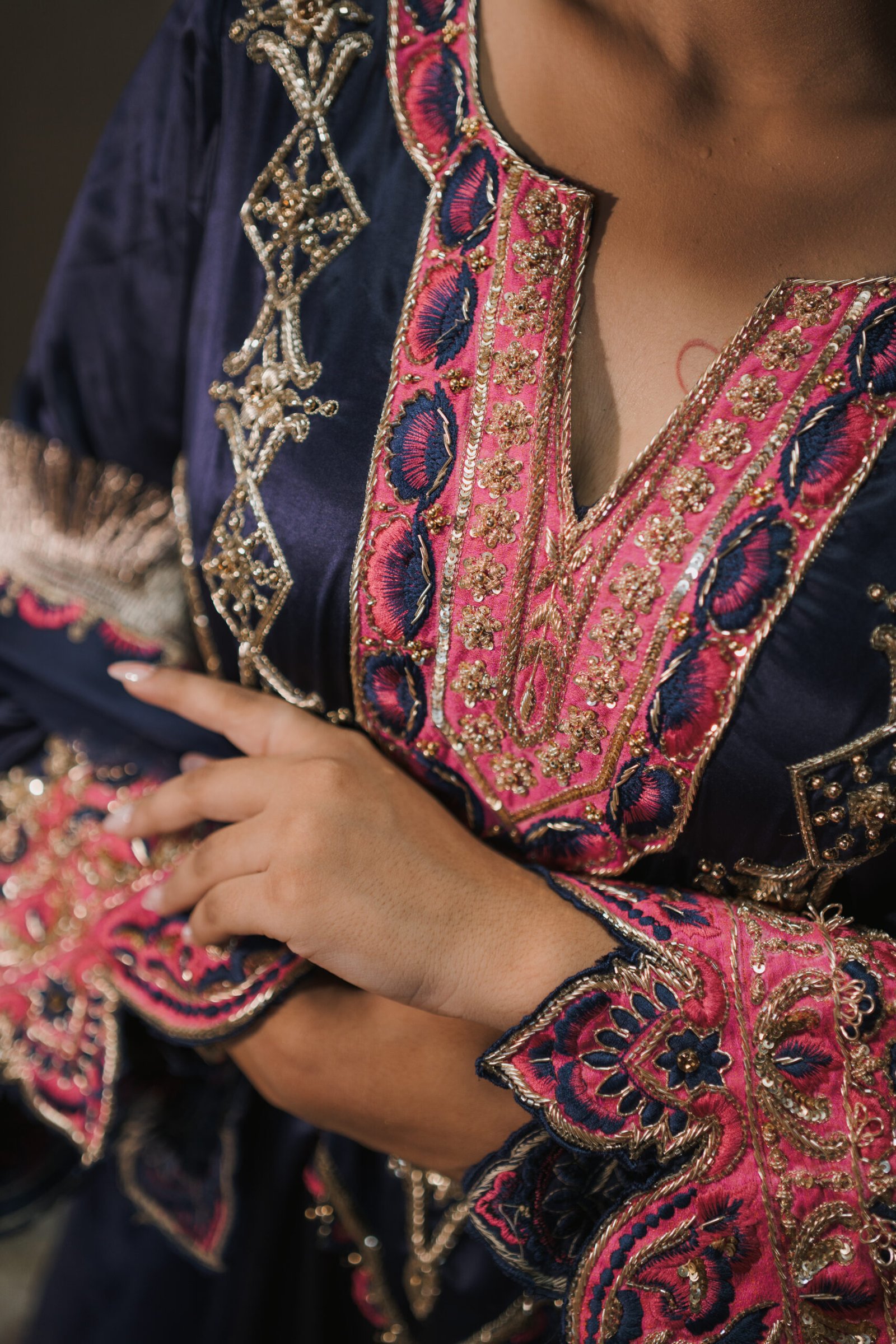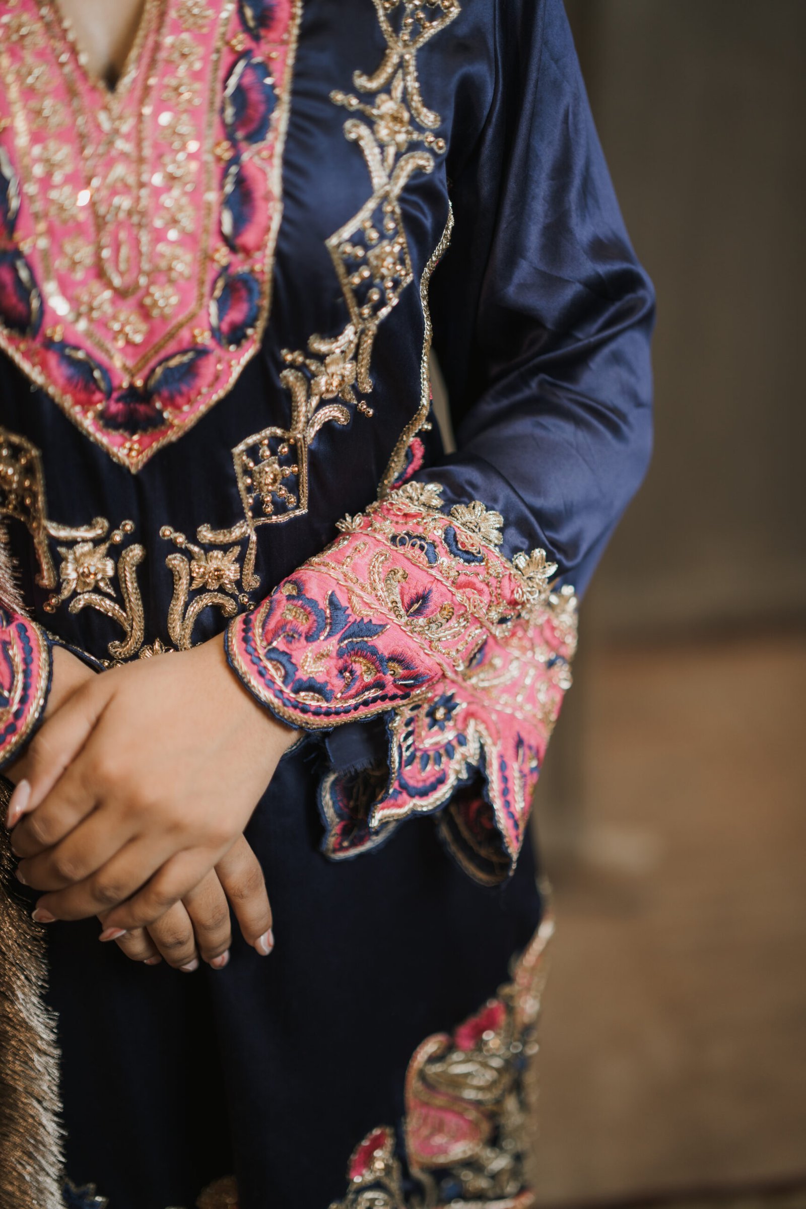 Dry Clean Only. These garments are delicate and feature hand embroidery, so professional dry cleaning is strongly recommended to maintain their quality and finish. Store in a cool, dry place away from direct sunlight. Avoid spraying perfume or cologne directly on the fabric, as this may cause staining or discoloration. Keep garments away from water and rain, as moisture can damage the fabric and hand embroidery.