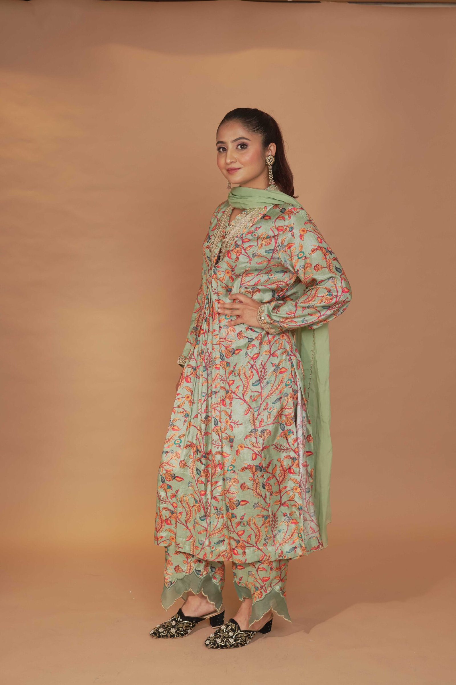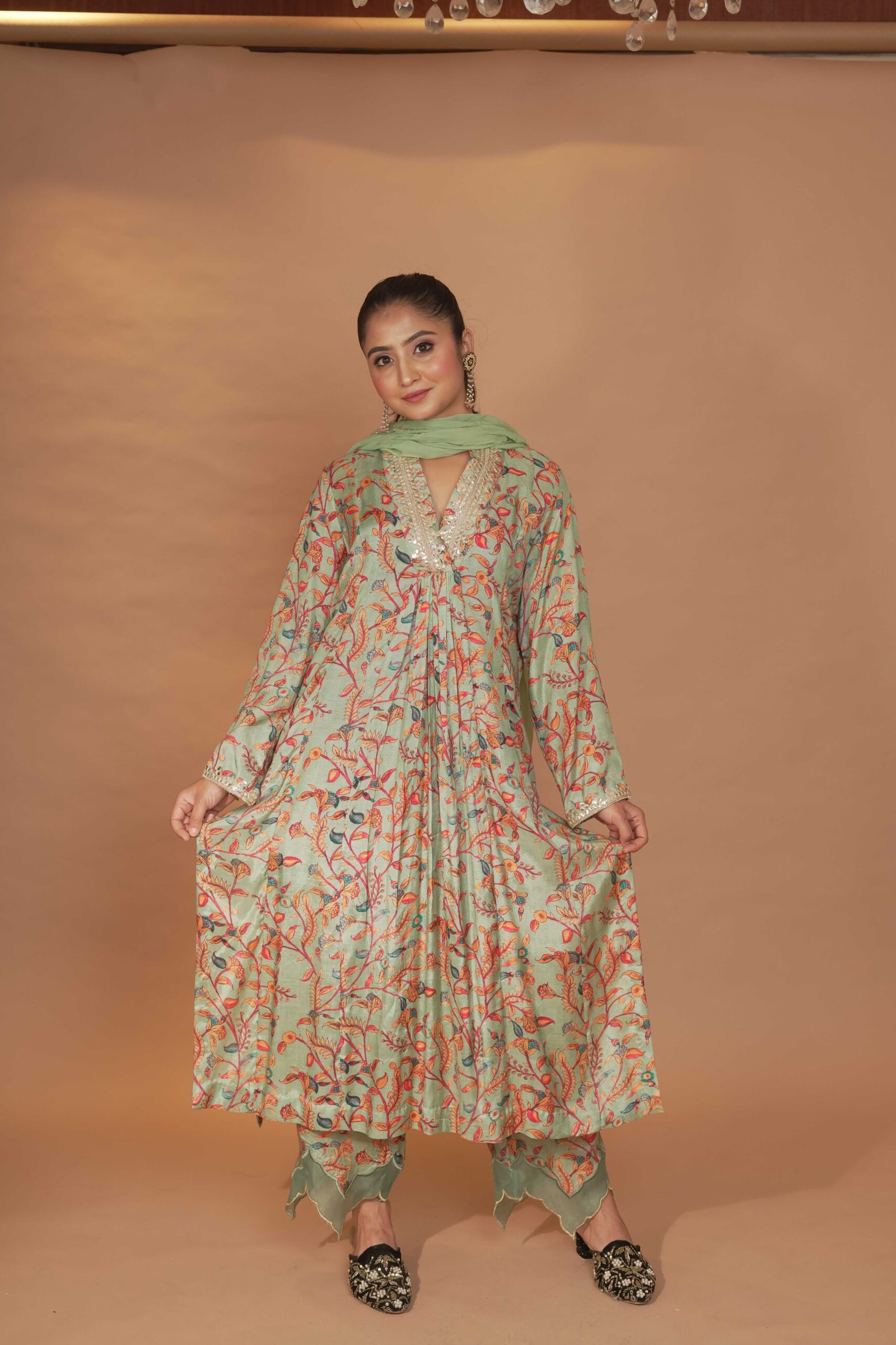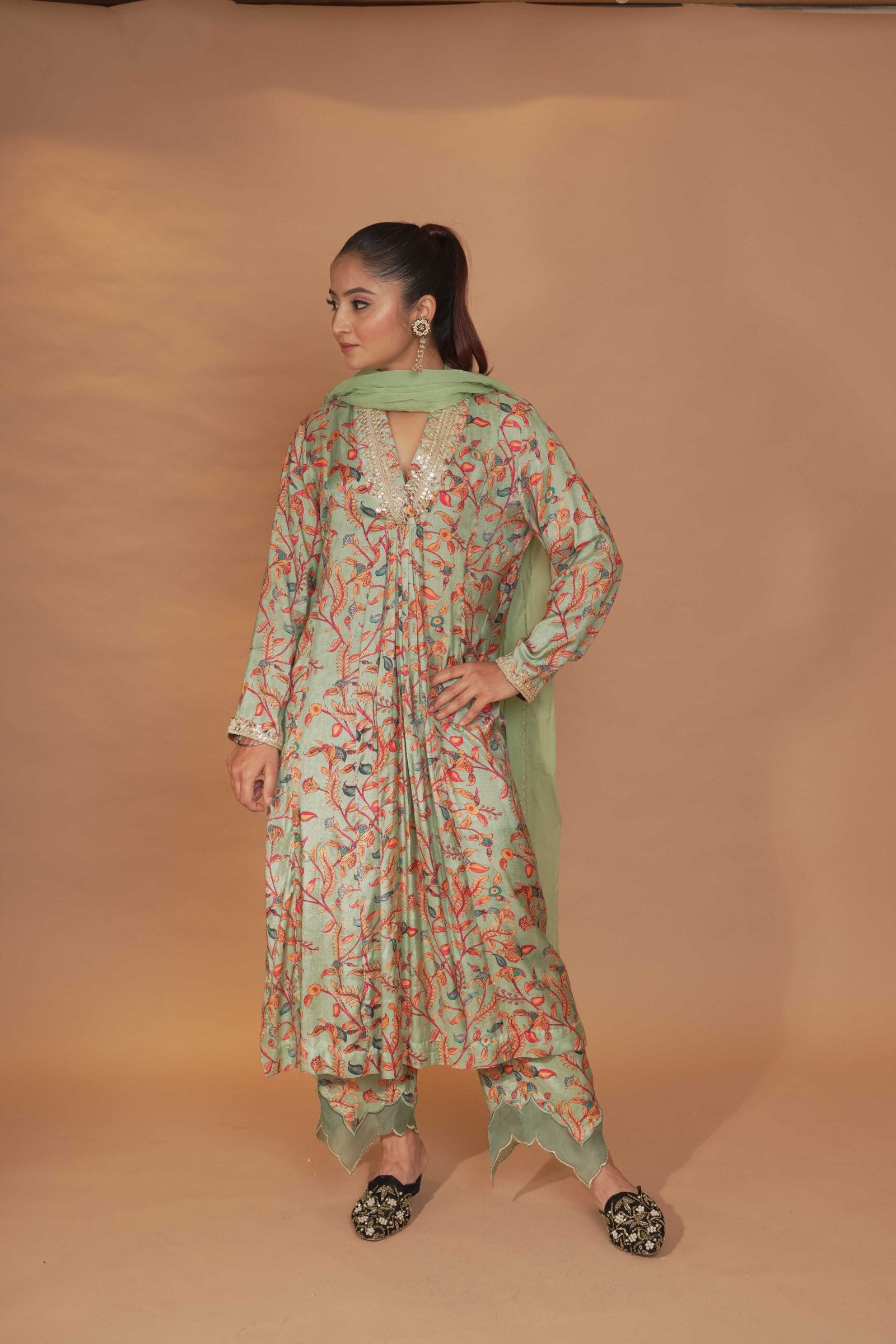 Dry Clean Only. These garments are delicate and feature hand embroidery, so professional dry cleaning is strongly recommended to maintain their quality and finish. Store in a cool, dry place away from direct sunlight. Avoid spraying perfume or cologne directly on the fabric, as this may cause staining or discoloration. Keep garments away from water and rain, as moisture can damage the fabric and hand embroidery.