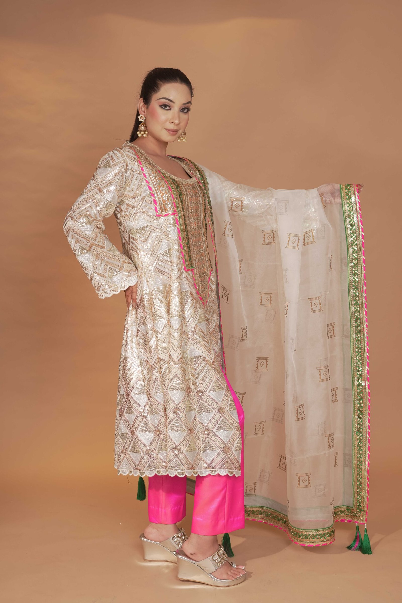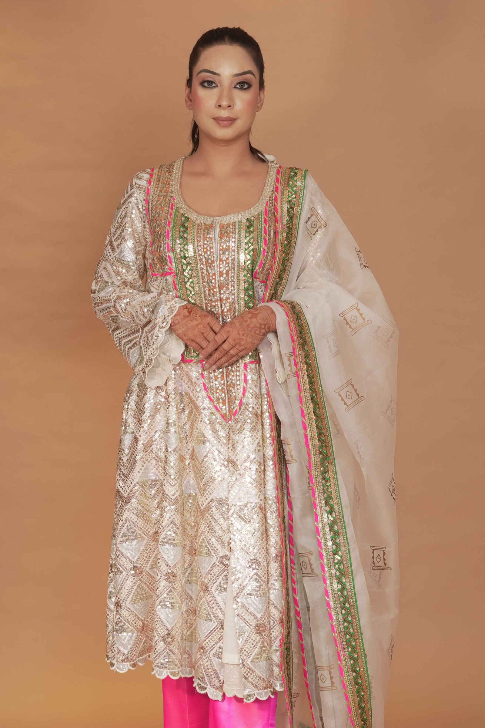 Dry Clean Only. These garments are delicate and feature hand embroidery, so professional dry cleaning is strongly recommended to maintain their quality and finish. Store in a cool, dry place away from direct sunlight. Avoid spraying perfume or cologne directly on the fabric, as this may cause staining or discoloration. Keep garments away from water and rain, as moisture can damage the fabric and hand embroidery.