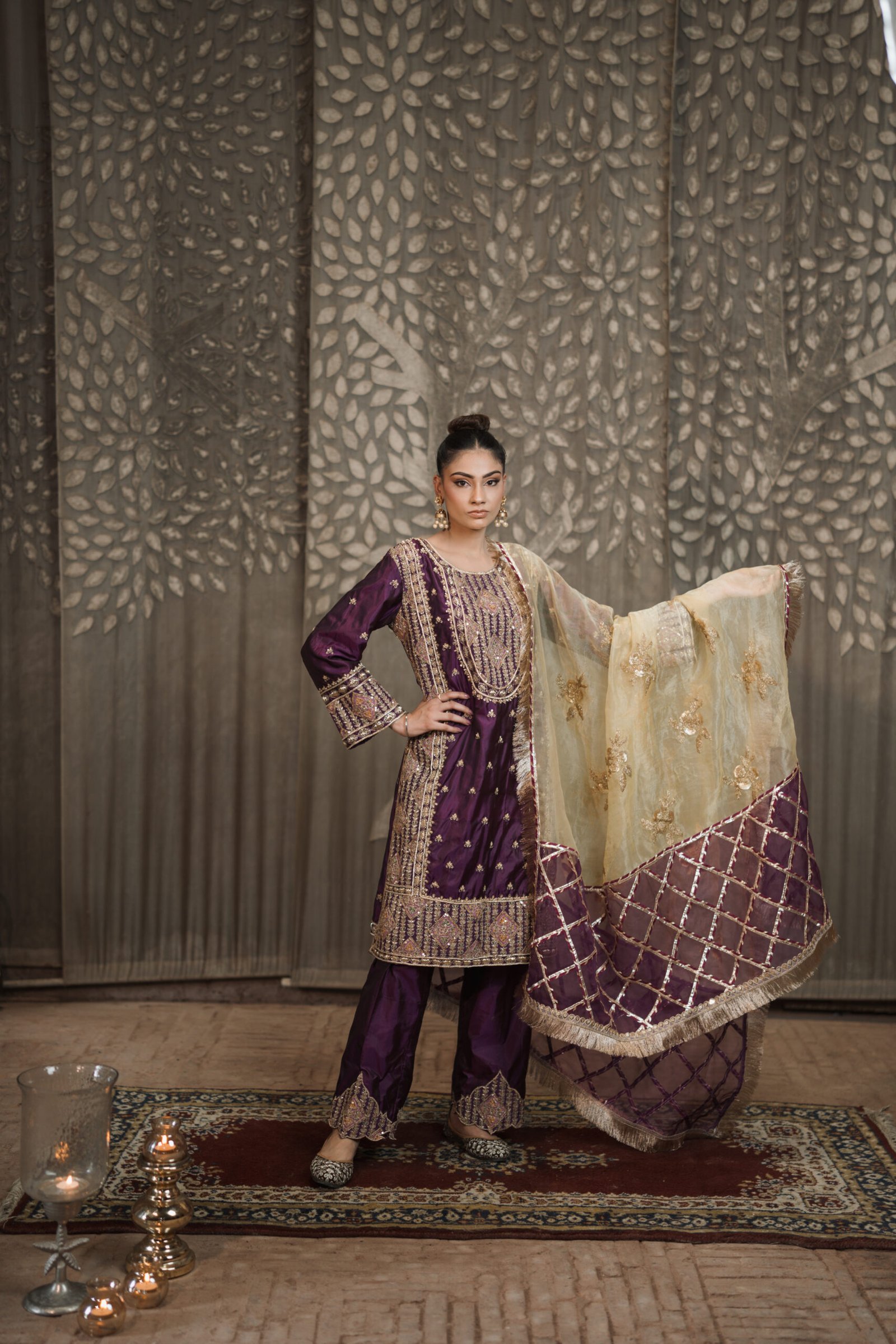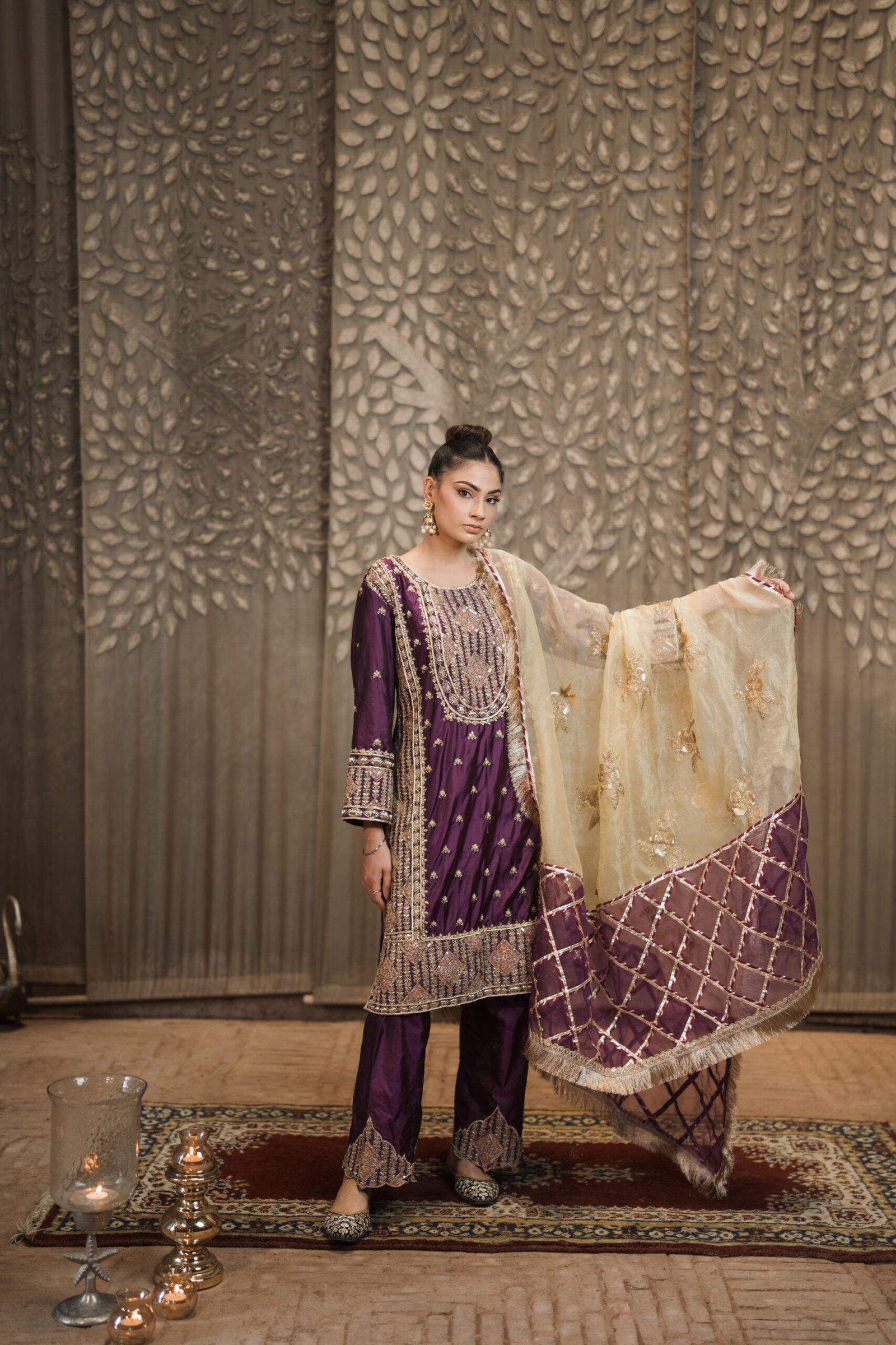 Dry Clean Only. These garments are delicate and feature hand embroidery, so professional dry cleaning is strongly recommended to maintain their quality and finish. Store in a cool, dry place away from direct sunlight. Avoid spraying perfume or cologne directly on the fabric, as this may cause staining or discoloration. Keep garments away from water and rain, as moisture can damage the fabric and hand embroidery.