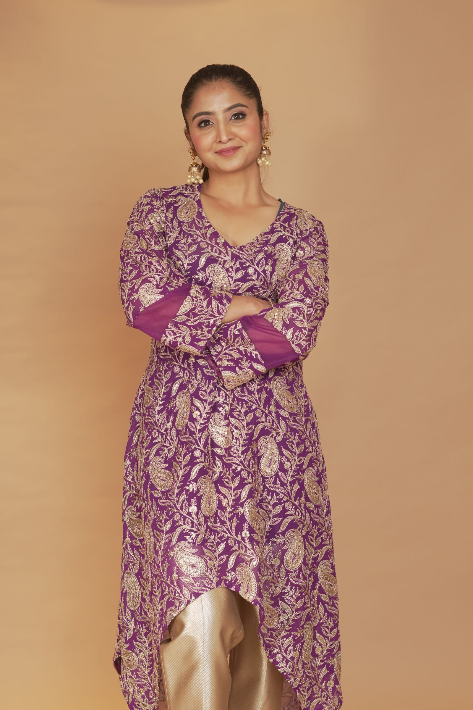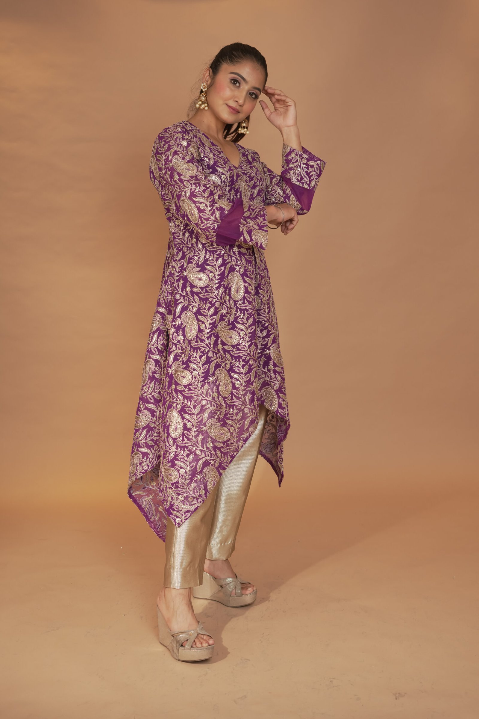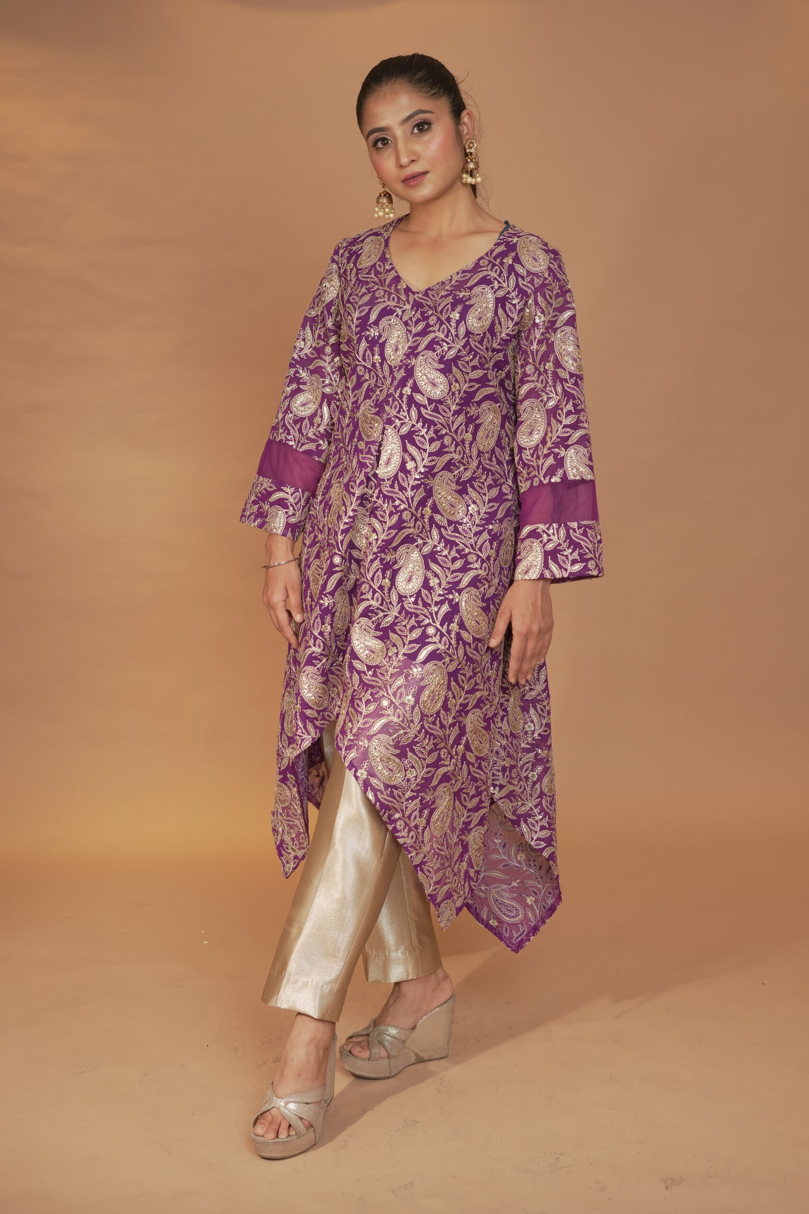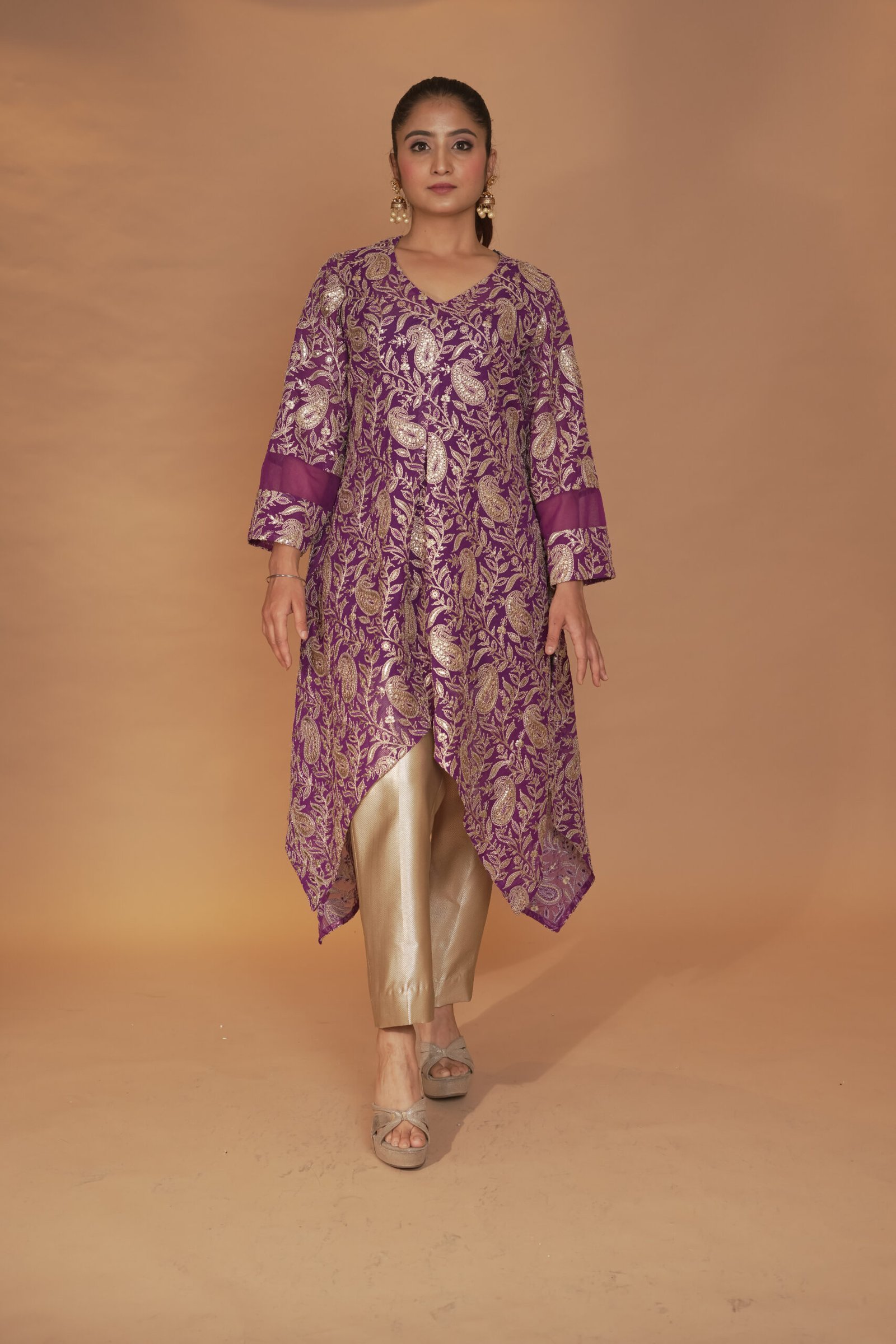 Dry Clean Only. These garments are delicate and feature hand embroidery, so professional dry cleaning is strongly recommended to maintain their quality and finish. Store in a cool, dry place away from direct sunlight. Avoid spraying perfume or cologne directly on the fabric, as this may cause staining or discoloration. Keep garments away from water and rain, as moisture can damage the fabric and hand embroidery.